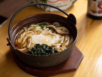 thick noodles, fish broth, chicken, poached egg, seaweed, scallion