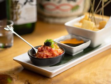 Seared Tuna, avocado, tomato, spicy krab, jalapeno, spicy cilantro sauce, spicy ponzu, tobiko