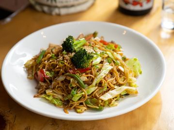 Toppings include baby bok choy, corn, wood ear mushroom, scallion, and choice of chashu or chicken. Option to add egg, house made chili sauce, or chili oil for additional charge.